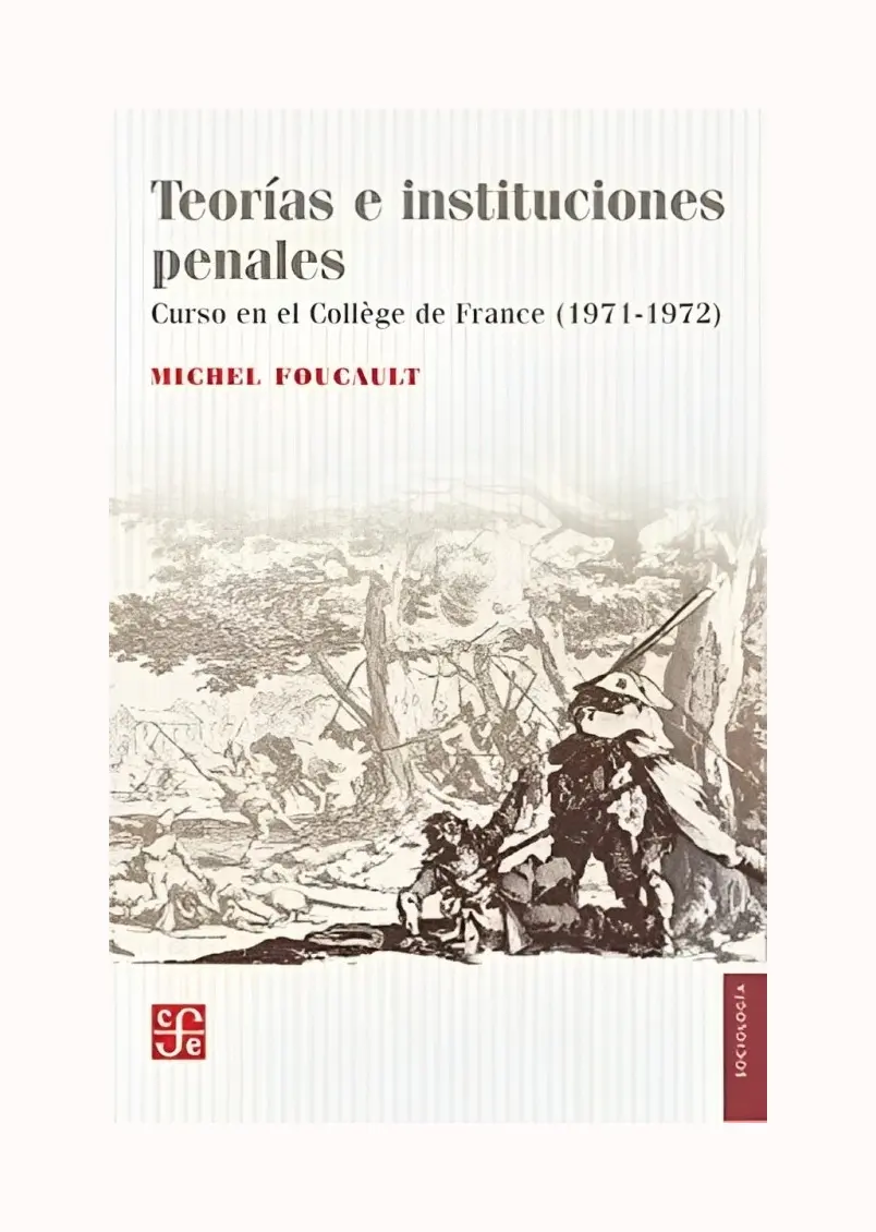 Teorias e instituciones penales es el titulo que Michel Foucault da al curso que dicta en el College de France entrenoviembre de 1971 y Marzo de 1972, momento en que teoriza por primera vez la cuestion del poder, que va a ocuparlo hasta la publicacion de Vigilar y castigar en 1975. Aqui, Foucault identifica en la represion de la revuelta de los pies descalzos (1639 - 1640) una instancia clave en la constitucion de una nueva forma represiva de Estado, aunque aun no dotada de sus 'aparatos' o instituciones - policia, intendentes de justicia, encierro administrativo - , que se desarrollaran en lo que resta del siglo XVII. Asi, el dispositivo de poder elaborado en esa oportunidad por la monarquia rompe con la economia de las instituciones juridicas y judiciales de la Edad Media para dar paso a un 'aparato judicial de Estado', que tendera a confiscar, de una manera cada vez mas estricta, la administracion de la justicia penal, y cuya funcion se centrara en el encierro dequienes desafien su orden. En terminos de Foucault, 'lo que caracteriza el acto de justicia no es el recurso a un tribunal y a jueces. Lo que caracteriza el acto juridico, el proceso o el procedimiento en sentido lato, es el desarrollo reglado de un litigio. Y en ese desarrollo, la intervencion de los jueces, su opiniono su decision, nunca es otra cosa que un episodio. Lo que define el orden juridico es la manera de enfrentarse, la manera de luchar. La regla y la lucha, la regla en la lucha:eso es lo juridico'. Con este volumen, se cierra la edicion de los cursos que dicto Foucault en el College de France desde 1970 hasta su muerte en 1984, iniciada hace mas de dos decadas con la publicacion de Defender la sociedad.