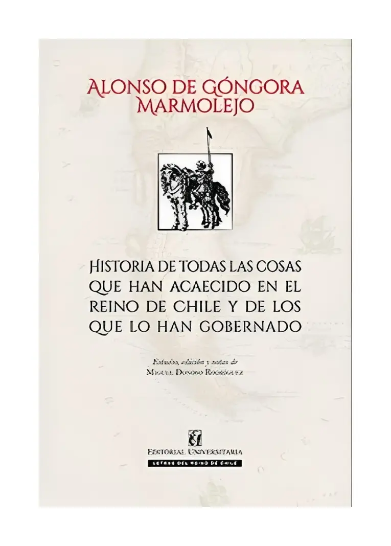 La crónica de Alonso de Góngora Marmolejo es uno de los pocos testimonios históricos que se conservan de la temprana conquista del reino de Chile. Texto fundamental para comprender mejor el periodo historiado por el autor, abarca desde la llegada de Pedro de Valdivia a Santiago, en 1541, hasta el final de la gobernación de Melchor Bravo de Saravia, en 1575. El autor combatió junto a Valdivia en los primeros años de la conquista, siendo un testigo privilegiado de los hechos más relevantes que protagonizaron españoles e indígenas durante los años fundacionales del territorio. La calidad de su texto ha sido destacada por diversos historiadores, quienes han valorado su objetividad en la relación de los sucesos. Esta crónica ha sido transcrita a partir del manuscrito original del autor que se conserva en la Real Academia de la Historia de Madrid, en un trabajo realizado conforme a rigurosos criterios filológicos. Asimismo, el texto ha sido anotado detalladamente, a fin de dar explicación de todo aquello que resulta lejano lo incomprensible para el lector actual. Va acompañado de un Estudio preliminar, un Estudio textual, un Glosario de personajes históricos y sendos Índices de voces anotadas y de Indigenismos.Letras del Reino de Chile es una colección de textos coloniales, indianos o virreinales escritos por autores nacidos en Chile, o que vivieron en Chile, o bien que tienen como tema central el reino de Chile, en el periodo comprendido entre 1520, año del descubrimiento del estrecho de Magallanes, y 1818, en que se materializó la independencia de este territorio de la Corona española. La colección abarca obras de distintos géneros.