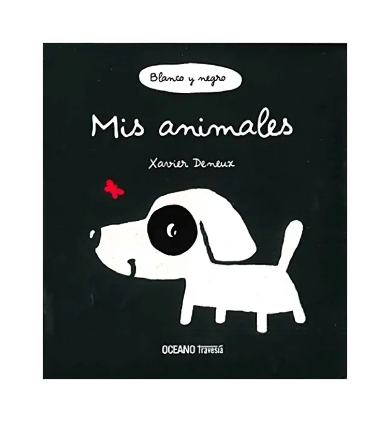 Libro en blanco y negro, con algunos acentos de color, y en cada página una ventana para estimular la vista y la imaginación. Un gato en una azotea, un pájaro en su rama, una rana en el estanque, un hipopótamo en el río...¡cuántos animales!.