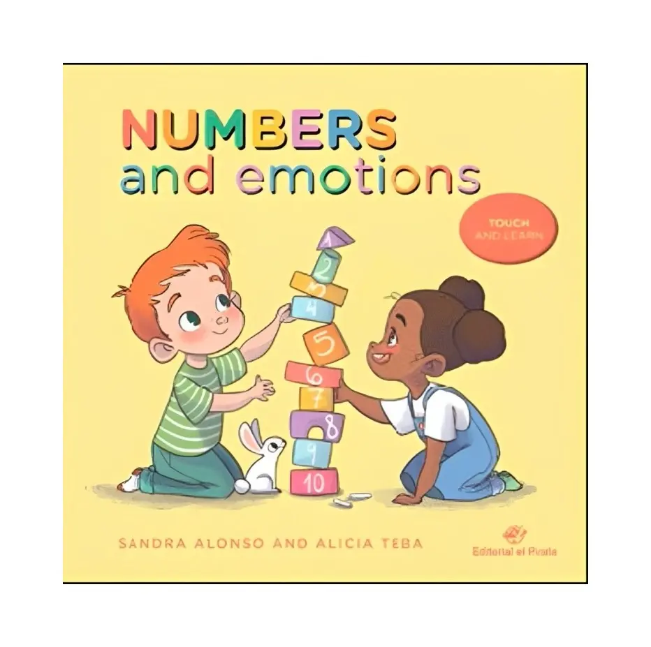 The book’s author has managed to bring two essential learning topics together in a single book: children learn the shape of the numbers and are introduced to ten different emotions. Using a gesture or idea for each emotion helps children to internalize and express them. The book features numbers from one through ten, printed in low relief so children can use their fingers to follow the numbers’ shapes. Each number is matched with an emotion and a gesture or concept. It helps children to learn numbers by following their shape with their fingers and introduces them to up to ten different emotions. Written in UPPERCASE letters.